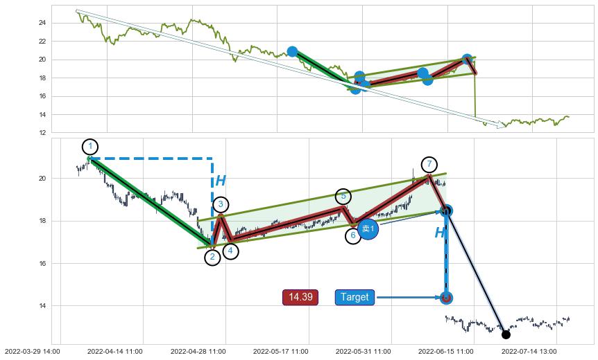 ➢ 【已达成】最小【整理】第一目标价格→(06-10:09: 14.39 ), 后续继续【整理】下跌动力依然存在,下跌空间适中