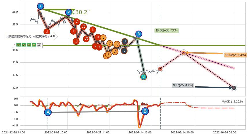 ♘ 阻力价格位16.89,可信任强度44.04%,距离最后交易2022-08-12 14:00形成的收盘价格13.73相差 +22.99%