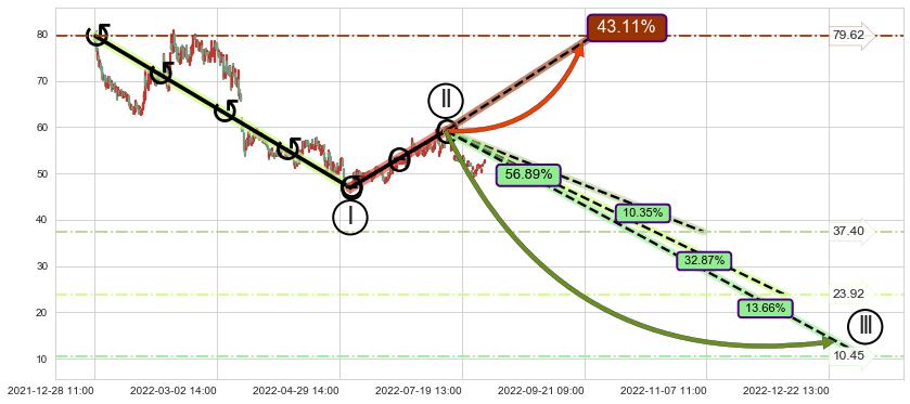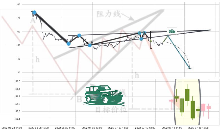 ➣ D点拟合预测价格69.95,距离最后交易收盘价格52.58相差 +33.04%