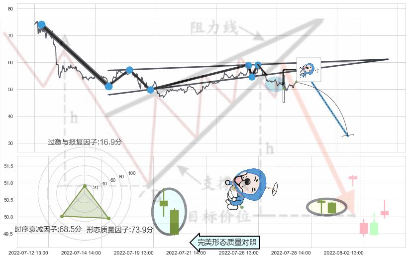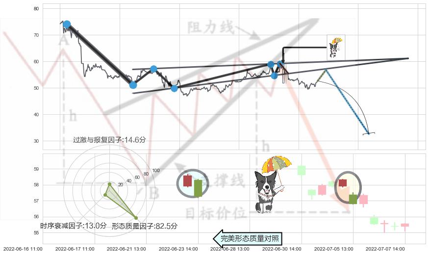 ➢ 🕰 价格走势在2022-07-14 13:00:00至2022-07-18 13:00:00期间形成高档五阴线,残存影响值:-3.74