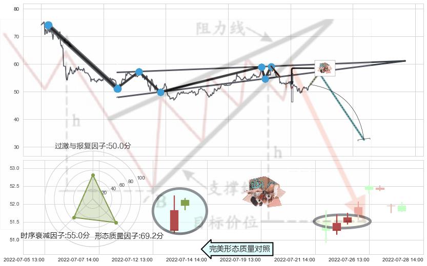 ➢ 下跌螺旋桨 🔜 升楔型支撑破位转换阻力下跌 综合量化分数:43.53 【偏空】