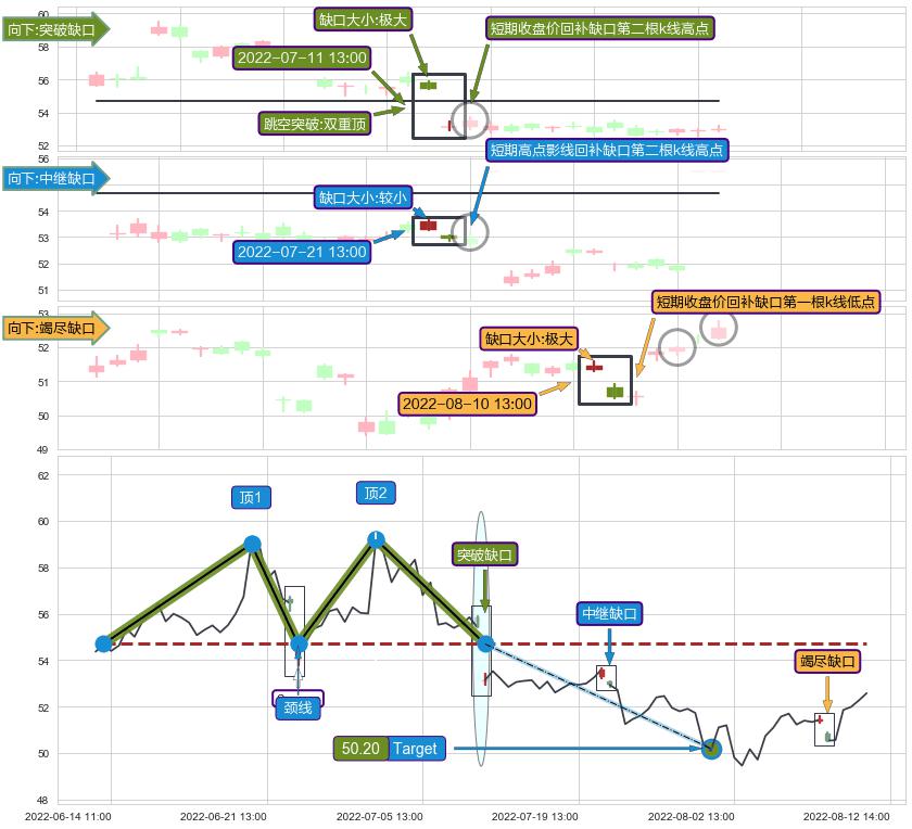 ➢ 2022-08-10 13:00形成:向下跳空【竭尽】缺口