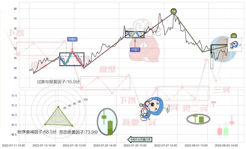 ➢ 🕰 价格走势在2022-08-03 13:00:00至2022-08-03 14:00:00期间形成射击之星形态,残存影响值:-3.89