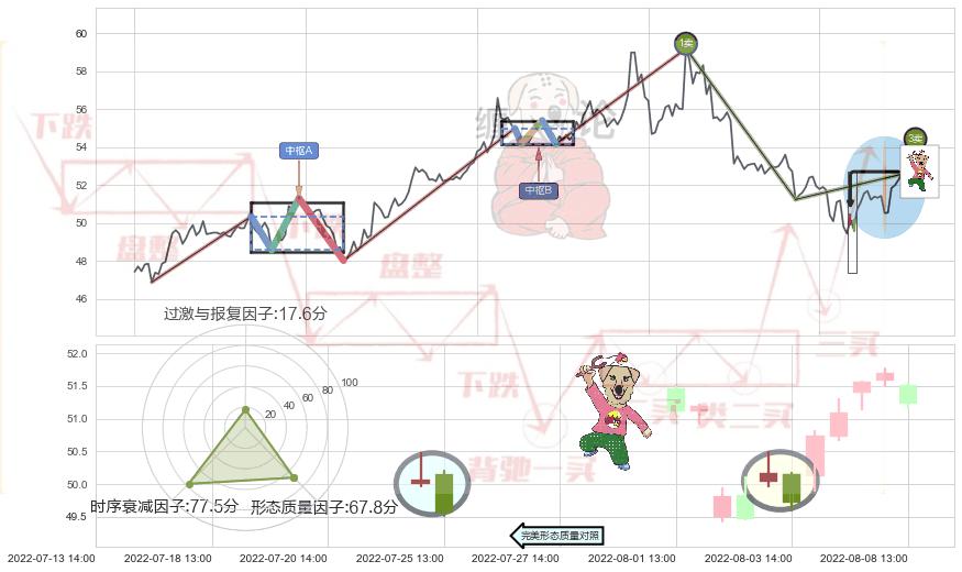 从2022-06-30 13:00至2022-08-02 14:00,共包含48个小时,阶段股价下跌-17.58%,阶段股价变动位移路程比: 1 : 2