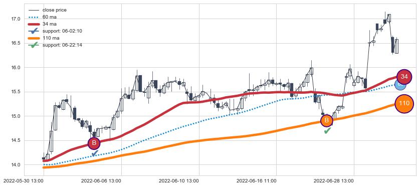 ➣ 34小时均线于(08-10 14:00: 14.23)形成【金叉】基于【金叉历史模型】预测金叉后最高波峰价格: 14.96, 金叉后最高价格14.34,尚未达到预测最高波峰价格, 预期继续上涨