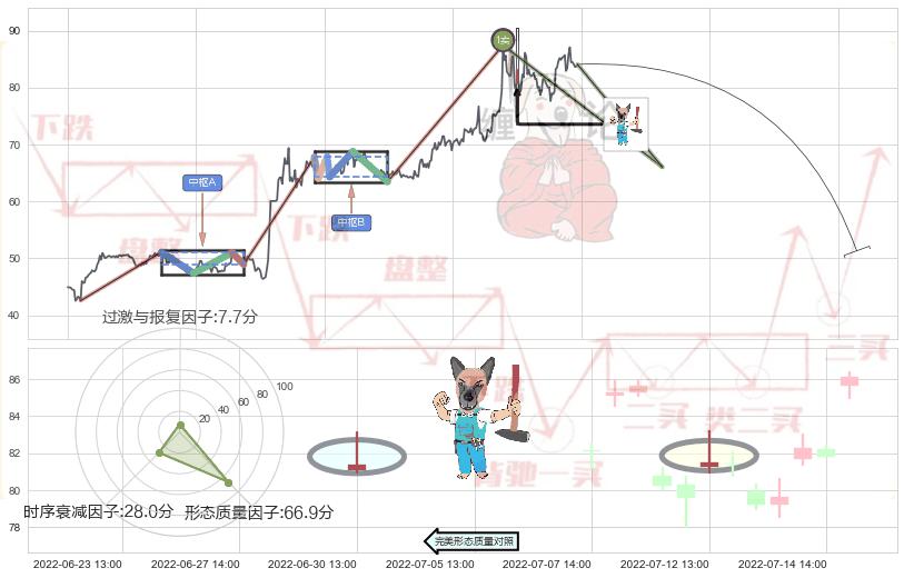 ➢ 🕰 价格走势在2022-07-08 14:00:00至2022-07-11 13:00:00期间形成下跌螺旋桨,残存影响值:-4.47