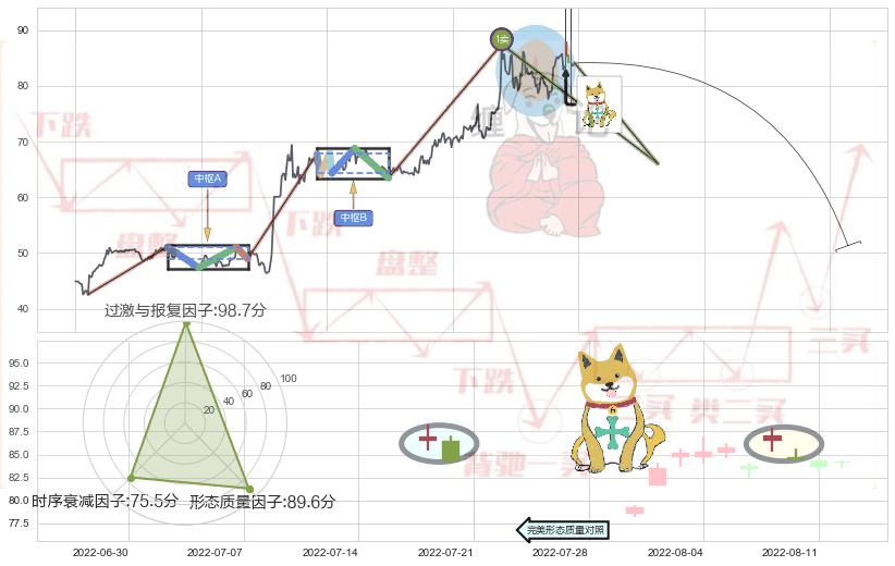 从2022-07-04 13:00至2022-08-12 14:00,共包含59个小时,阶段股价下跌-2.74%,阶段股价变动位移路程比: 1 : 29