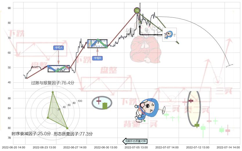 ➢ 🕰 价格走势在2022-07-12 13:00:00至2022-07-12 13:00:00期间形成看跌(高位倒锤头)流星线,残存影响值:-2.48