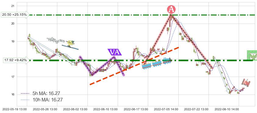 ♘ 阻力价格位17.92,可信任强度88.51%,距离最后交易2022-08-12 14:00形成的收盘价格16.38相差 +9.42%