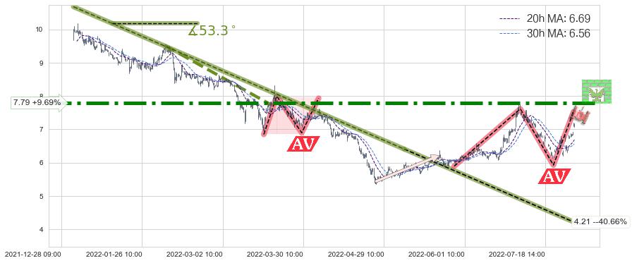 2022-06-24: 第一阻力位7.79强力阻拦了上升趋势,成功阻止了价格的继续上涨。