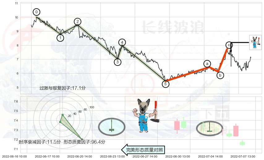➣ ['回调abc识别为: 【锯齿型调整浪】 ', '锯齿型:子浪535结构 ⓑ点振幅较小,ⓒ点继续发力远超ⓐ点结束位置']