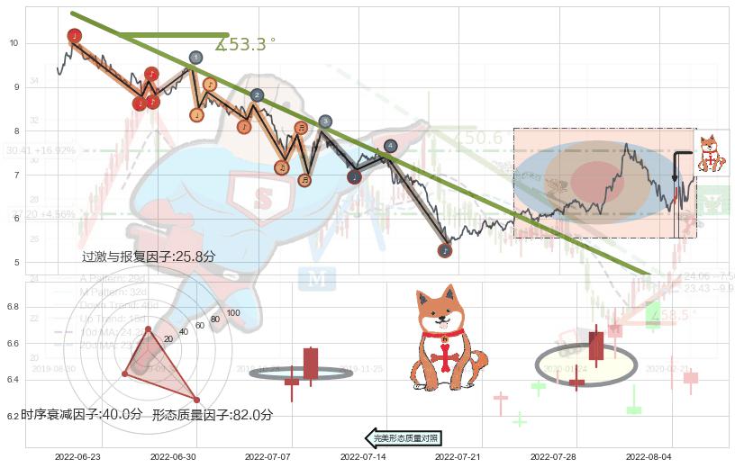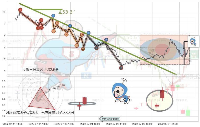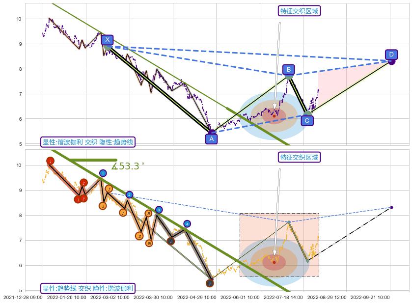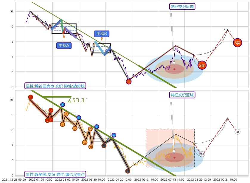 从2021-12-31 09:00至2022-05-11 10:00,共包含411个小时,阶段股价下跌-49.86%,阶段股价变动位移路程比: 1 : 6,下跌趋势角度: 53.3