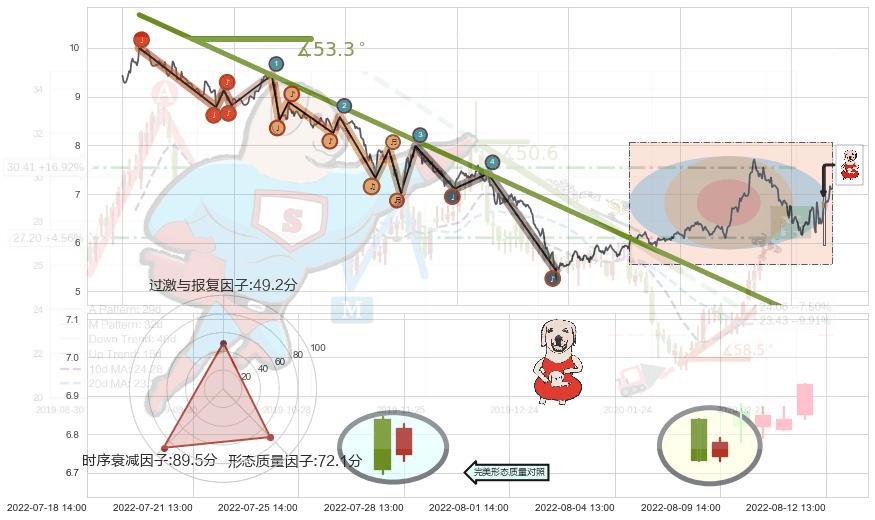 ♘ 阻力价格位7.79,可信任强度90.96%,距离最后交易2022-08-12 14:00形成的收盘价格7.10相差 +9.69%