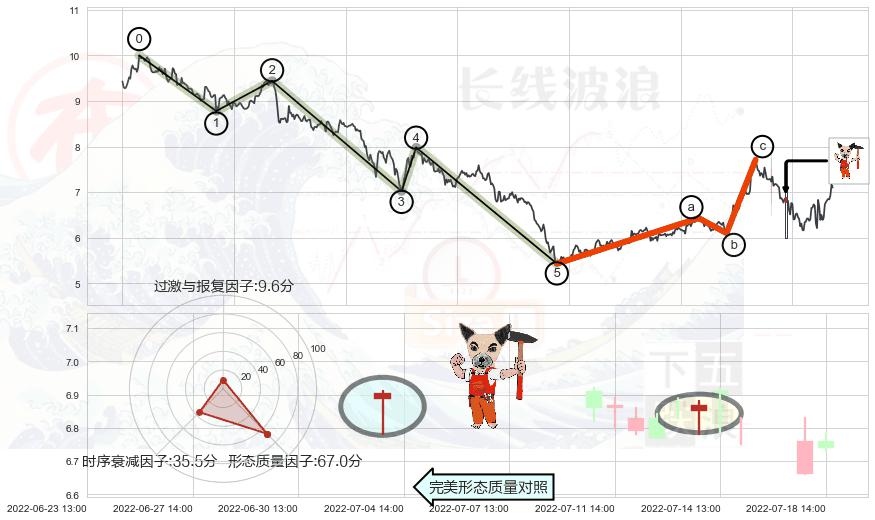 ➢ 🕰 价格走势在2022-07-08 13:00:00至2022-07-08 13:00:00期间形成单针探底(定海神针),残存影响值:2.53