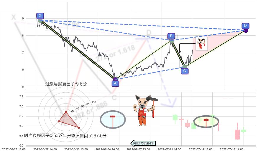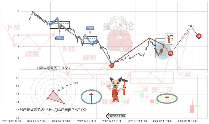 ➢ 🕰 价格走势在2022-07-13 14:00:00至2022-07-13 14:00:00期间形成锤头线(锤子线),残存影响值:2.62