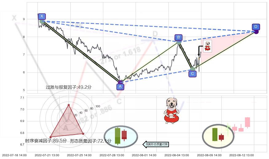 ➢ 🕰 价格走势在2022-08-09 13:00:00至2022-08-09 14:00:00期间形成上涨身怀六甲,残存影响值:5.64