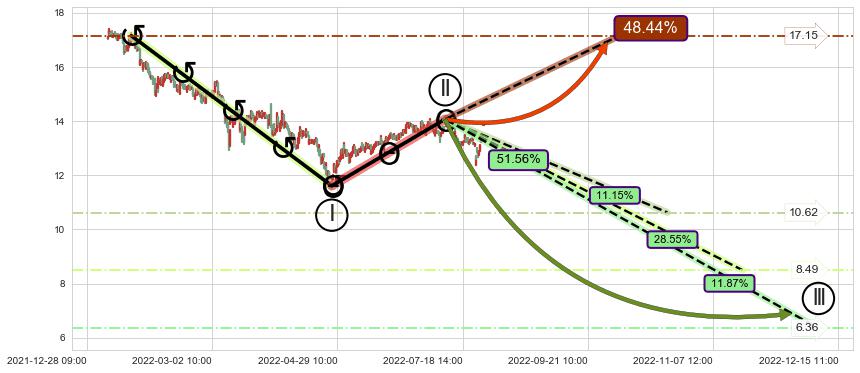 ➣ D点拟合预测价格14.81,距离最后交易收盘价格13.91相差 +6.43%