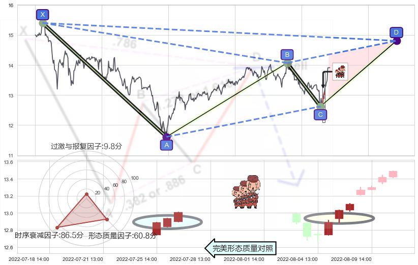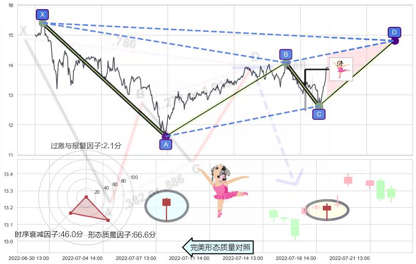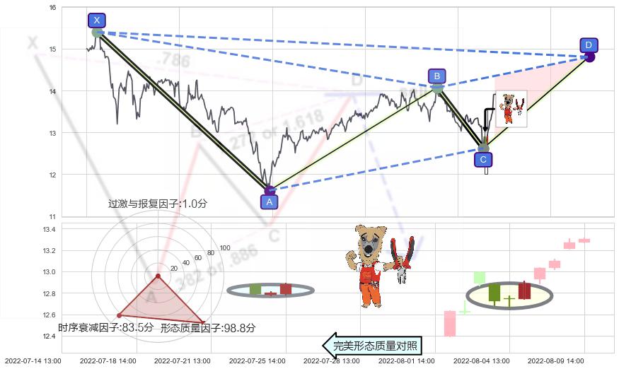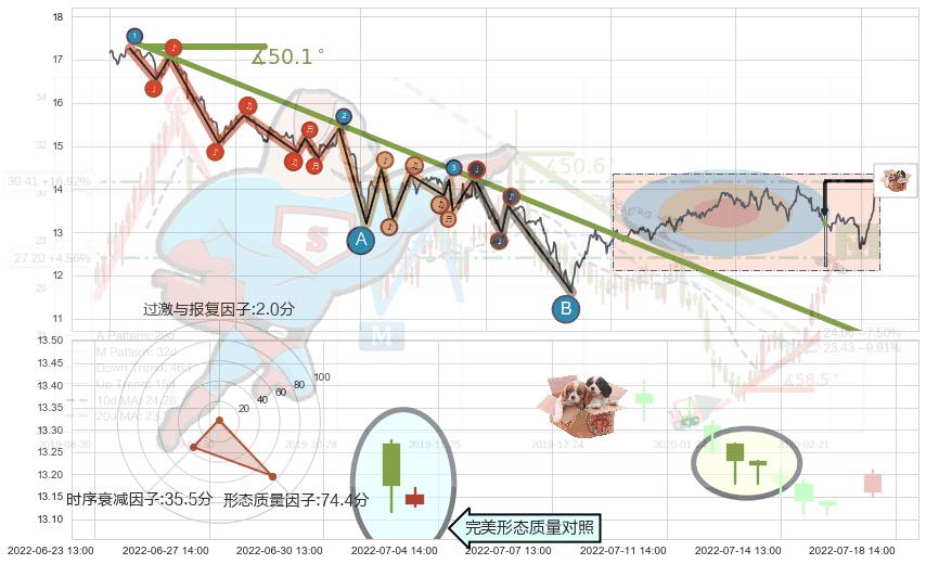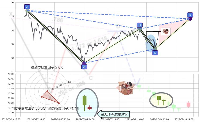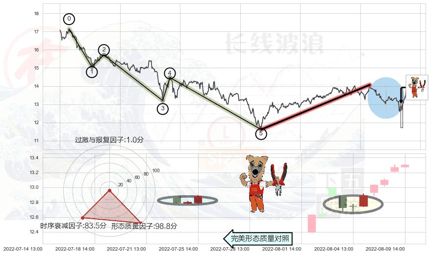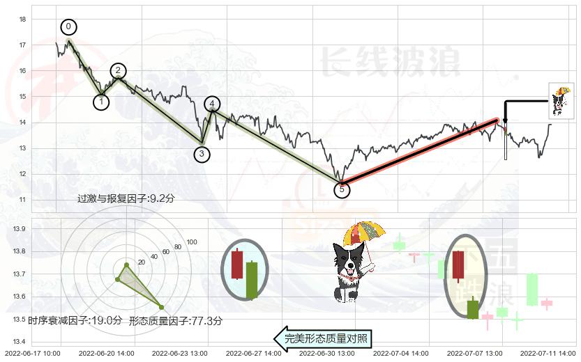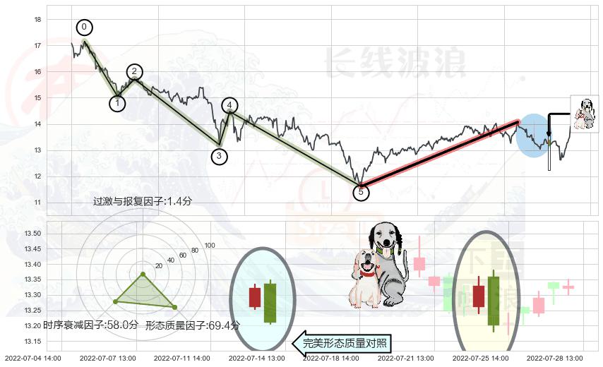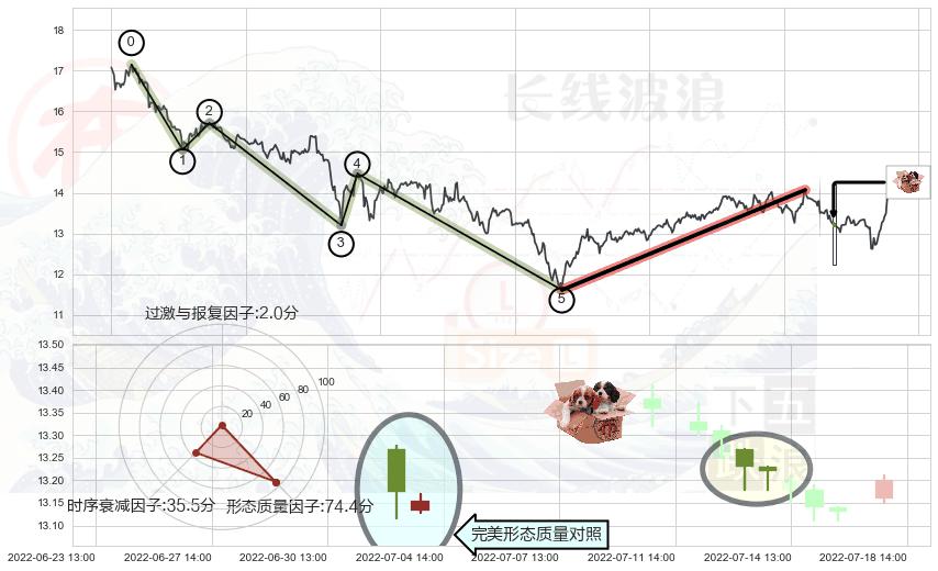 ➢ 🕰 价格走势在2022-07-13 13:00:00至2022-07-13 14:00:00期间形成底部尽头线(上山虎),残存影响值:2.21