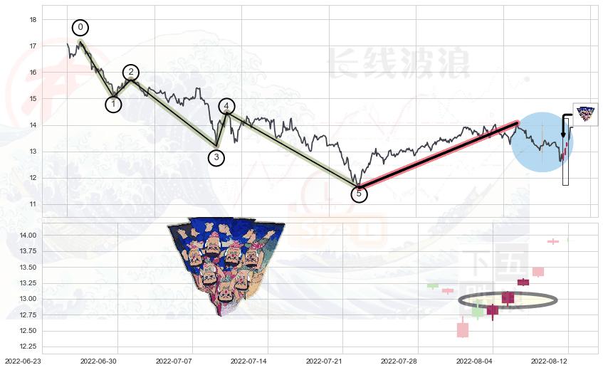 ➢ 循环浪继续向下【最低】位置(12-15:11, 6.36),匹配聚类样本比例23.02%, 可能性概率11.87%