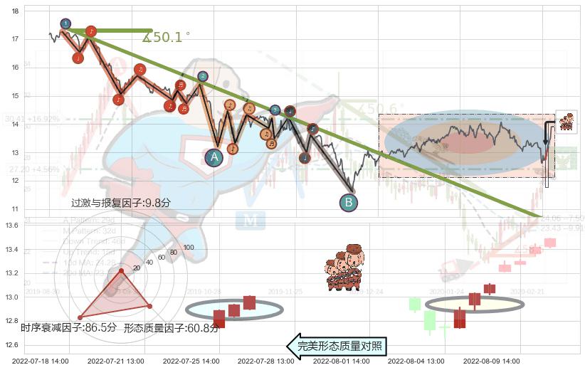 ♘ 支撑价格位13.34,可信任强度71.39%,距离最后交易2022-08-12 14:00形成的收盘价格13.91相差 -4.11%
