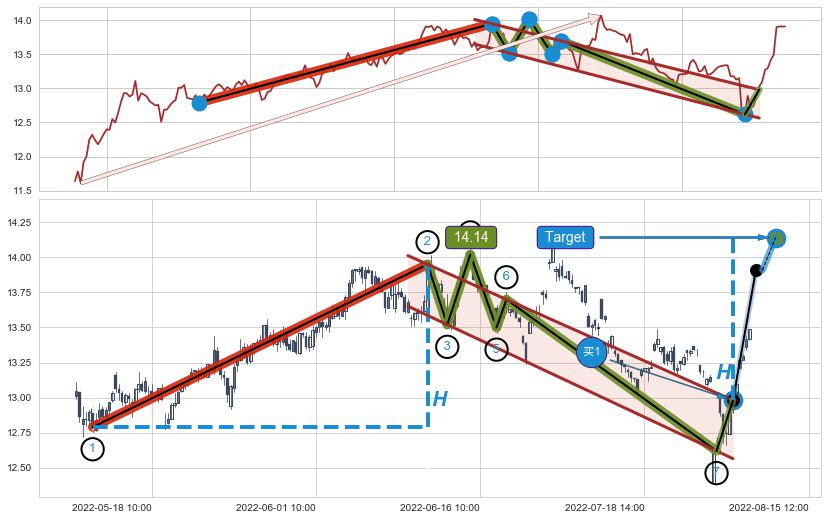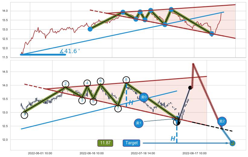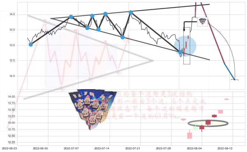 ➣ 【已确认突破】最后价格:13.91与最小【反转】第一目标价格→(08-23:11: 11.87 )相较: 下跌空间【较大】