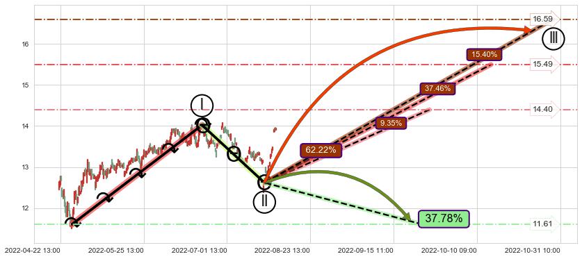 ♘ 阻力价格位14.13,可信任强度91.47%,距离最后交易2022-08-12 14:00形成的收盘价格13.91相差 +1.59%