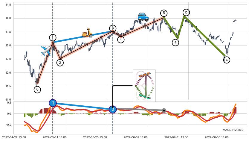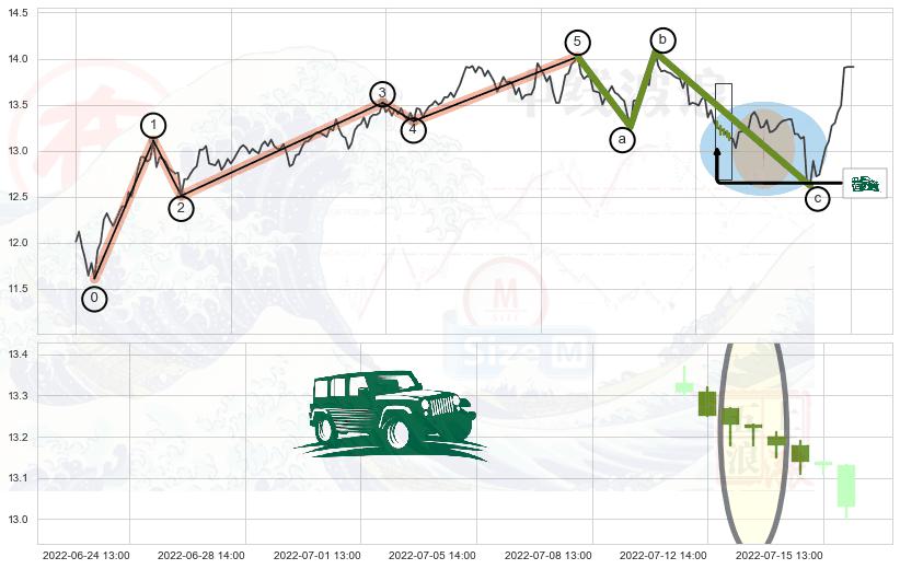 ➣ 波浪理论:猜想达到c点后小回调终止反转上涨 → 上涨 → 【拐点】临近 → 阶段均值回复结束后继续大周期趋势跟踪