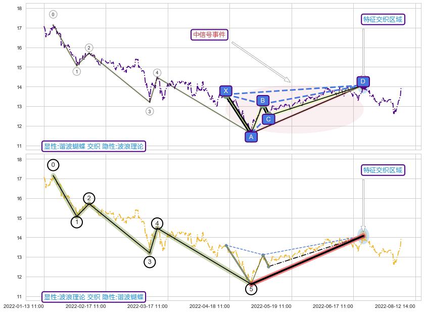 ➢ 波浪理论与谐波蝴蝶信号事件周期长度级别相同,同周期信号事件