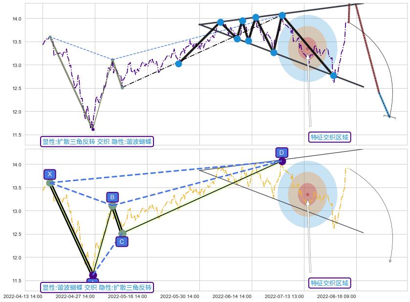 ➣ 已完成【蝴蝶】形态起点X: 04-15:10, 终点D: 06-28:14, 共223交易小时