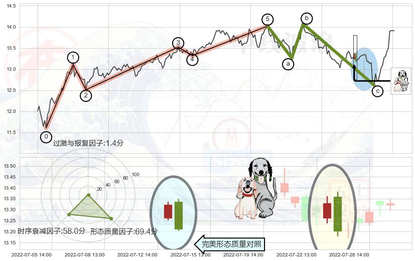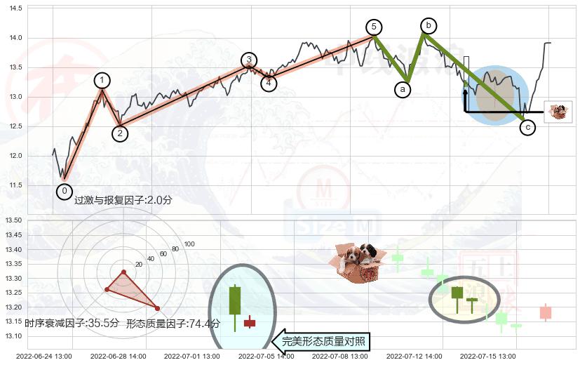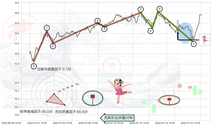 ➢ 🕰 价格走势在2022-07-12 14:00:00至2022-07-14 14:00:00期间形成高档五阴线,残存影响值:-0.82