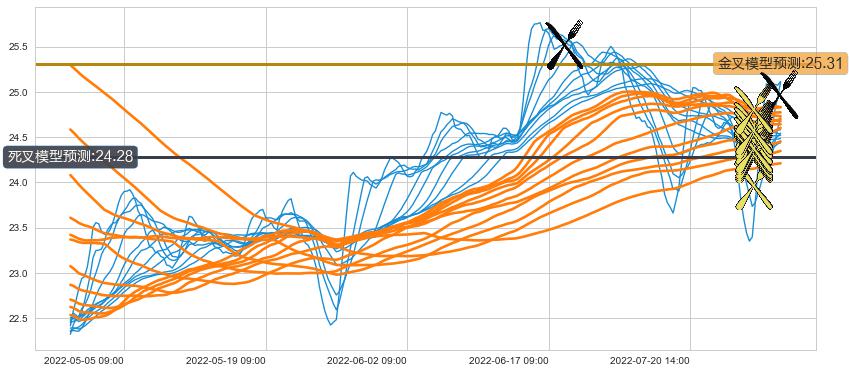 ➣ 10小时均线于(08-12 13:00: 24.95)形成【死叉】基于【死叉历史模型】预测死叉后最低波谷价格: 24.38, 死叉后最低价格25.06,已经下跌超出预测最低波谷价格, 预期反弹