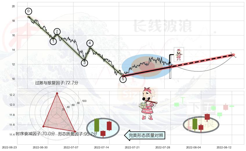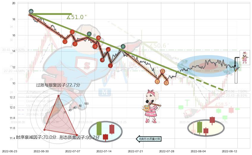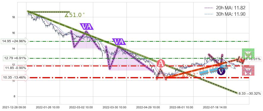 ♘ 支撑价格位10.35,可信任强度74.52%,距离最后交易2022-08-12 14:00形成的收盘价格11.96相差 -13.46%