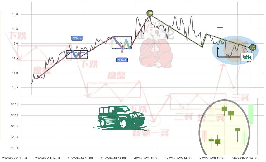 ➣ 【中枢B】:06-06:11-06-09:13,中枢由4笔构成,共17交易小时, ZG=12.12, ZD=11.83