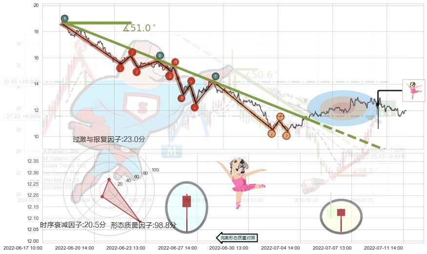 从2021-12-29 09:00至2022-05-20 13:00,共包含458个小时,阶段股价下跌-44.02%,阶段股价变动位移路程比: 1 : 7,下跌趋势角度: 51.0