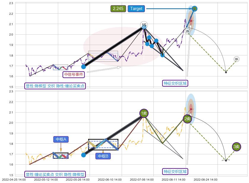 ➣ 缠论买卖点:猜想2卖持续蓄力下跌至3卖 → 下跌 → 风险信号 → 小趋势跟踪