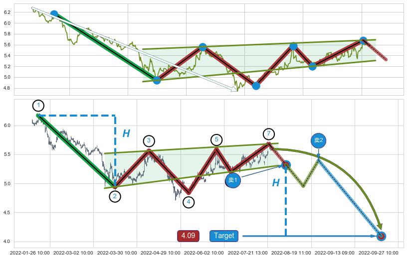 ➢ AI预测: 假定反转启动后, 第❷目标位置(09-14:14, 5.17)