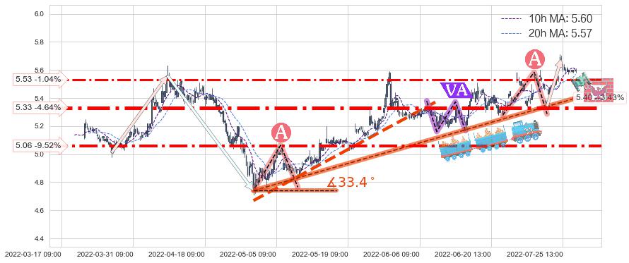 ♞ 10小时均线:5.60,20小时均线:5.57→ 快线>慢线
