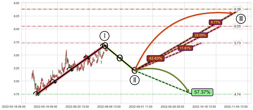 ➢ 循环浪继续向上【最低】位置(10-06:14, 5.73),匹配聚类样本比例27.70%, 可能性概率11.81%
