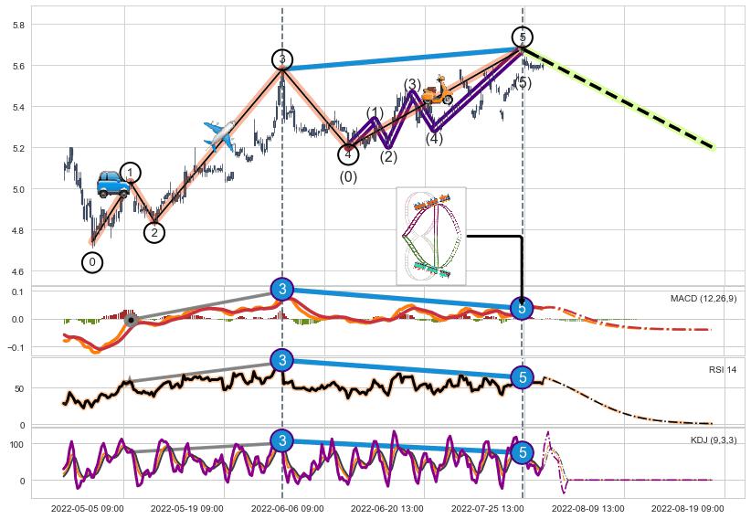 ➣ 波浪理论:猜想止涨 → 下跌 →【拐点】浪5已完成 → 大趋势均值回复