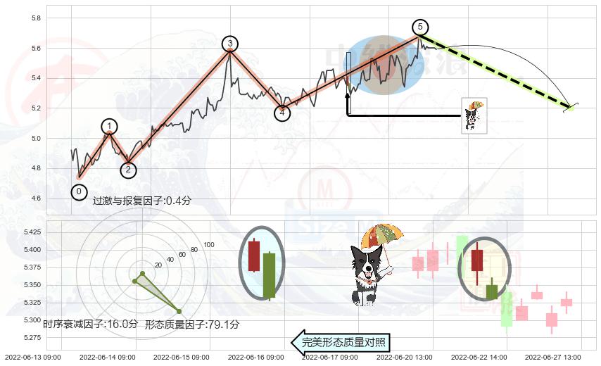 ➢ 🕰 价格走势在2022-06-21 14:00:00至2022-06-22 13:00:00期间形成倾盆大雨,残存影响值:-1.67