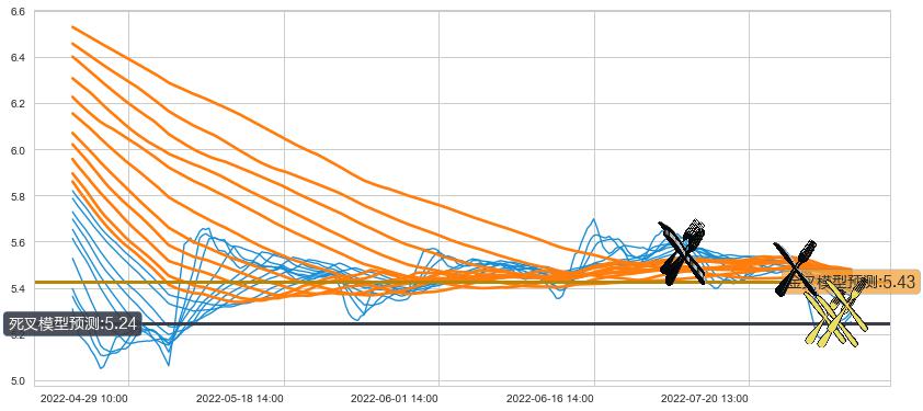 ➣ 80小时均线于(07-05 14:00: 5.52)形成【死叉】基于【死叉历史模型】预测死叉后最低波谷价格: 5.19, 死叉后最低价格5.14,已经下跌超出预测最低波谷价格, 预期反弹