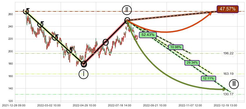 ♘ 阻力价格位246.43,可信任强度59.00%,距离最后交易2022-08-12 14:00形成的收盘价格224.90相差 +9.57%