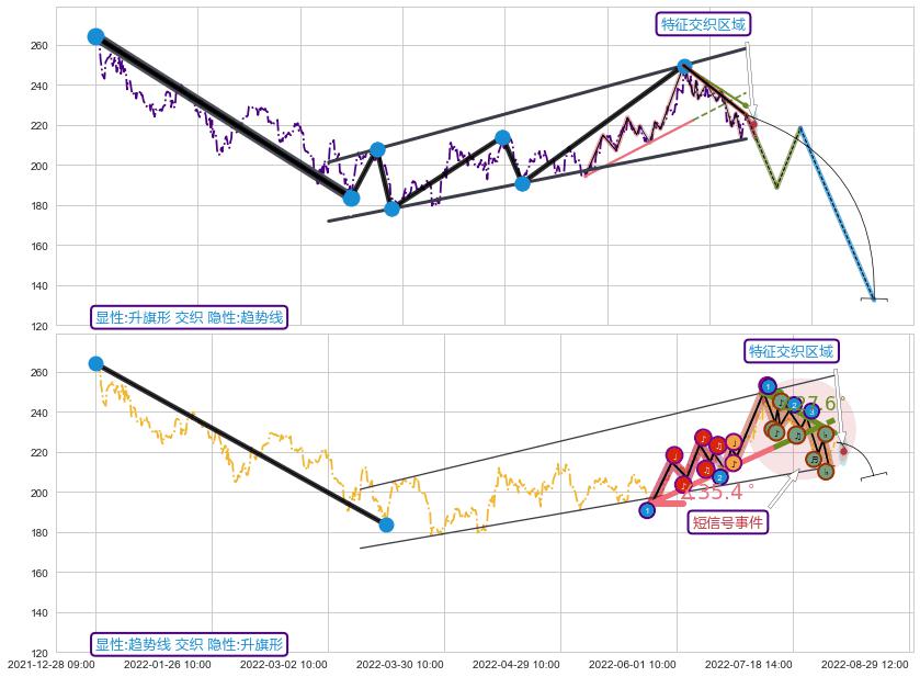➢ 趋势线属【短级别信号事件】升旗形属【长级别信号事件】长短周期组合信号事件, 短长事件长度比9.73%