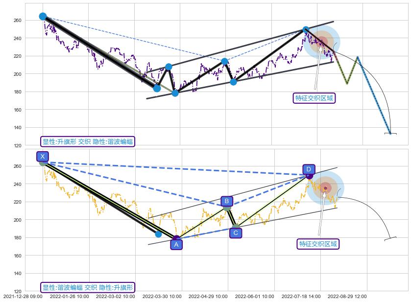 ➢ 升旗形与谐波蝙蝠信号事件周期长度级别相同,同周期信号事件