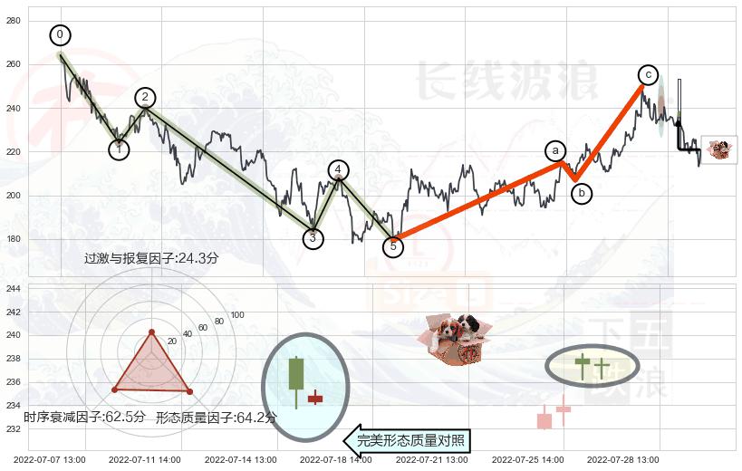 ➢ 🕰 价格走势在2022-07-28 14:00:00至2022-07-29 13:00:00期间形成射击之星形态,残存影响值:-6.50