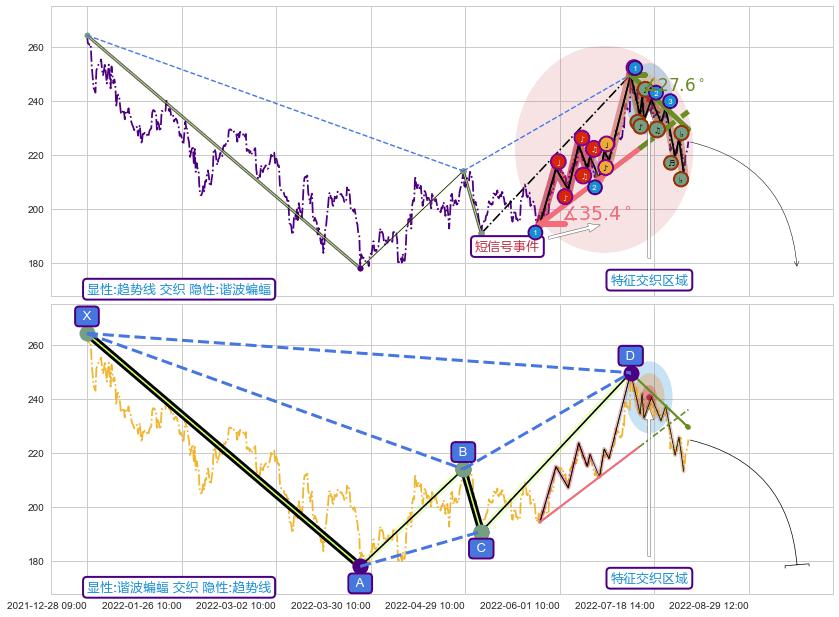 ➢ 趋势线属【短级别信号事件】谐波蝙蝠属【长级别信号事件】长短周期组合信号事件, 短长事件长度比23.61%