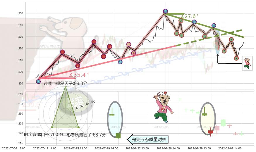 ➢ 预测:2022-08-15 13:00,【小幅反弹】稳定目前下跌趋势的前提下,预测价格:227.76