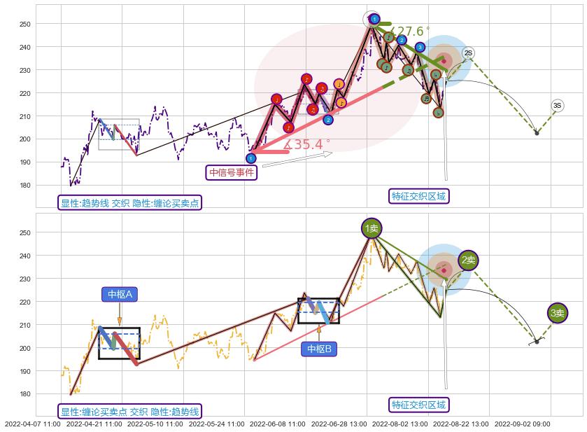 ➢ 2022-05-26 09:00-2022-07-06 14:00上升趋势存在反转[风险],其原上升趋势的支撑位(236.00)已破位[强阻力信号],原上升趋势角度: 35.4˚