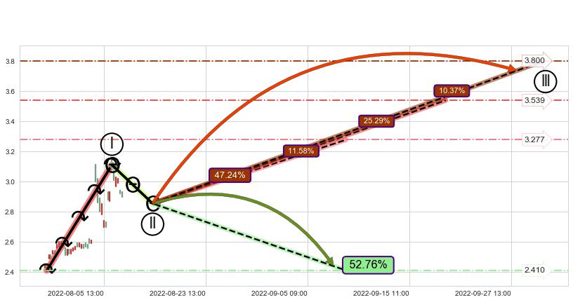 ➢ 循环浪继续向上【最低】位置(09-08:10, 3.277),匹配聚类样本比例24.51%, 可能性概率11.58%