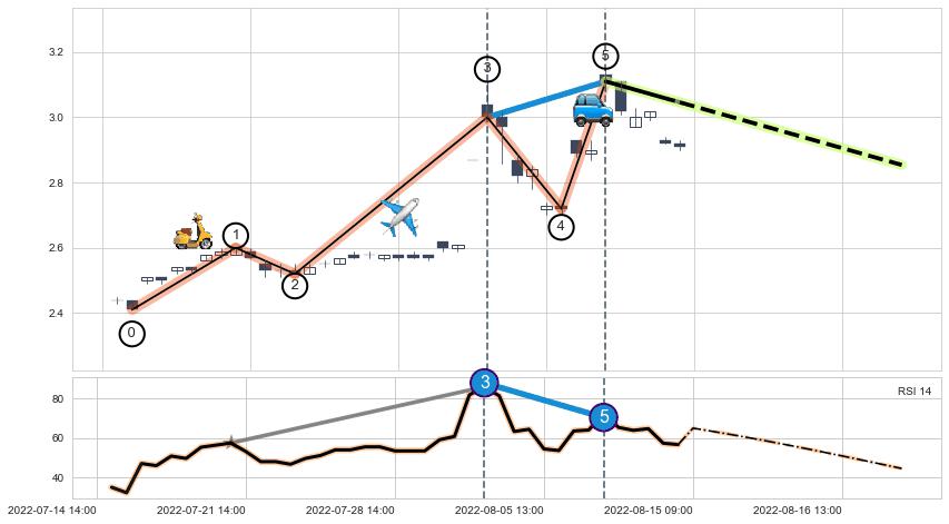 ➢ 第三,五驱动浪端点:【RSI】走势出现【常规背离 & 反转信号】背离程度99.00%,背离夹角角度70.2˚,背离程度较大